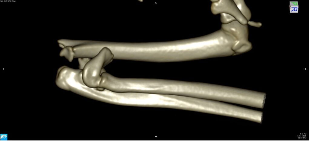 Contexte d’instabilité renforcé par l’articulation du coude sous-jacente, articulation complexe qui met en contact 3 os (radius, ulna et humérus).